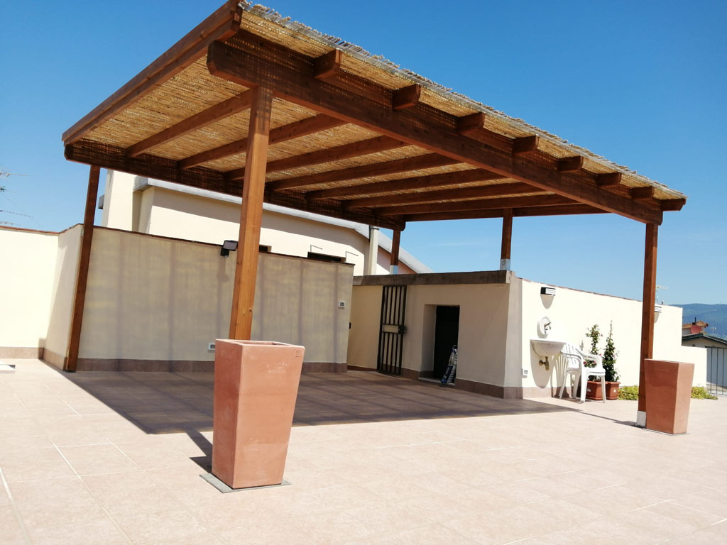 Produciamo i nostri pergolati completamente a misura adattandoli al vostro spazio esterno.